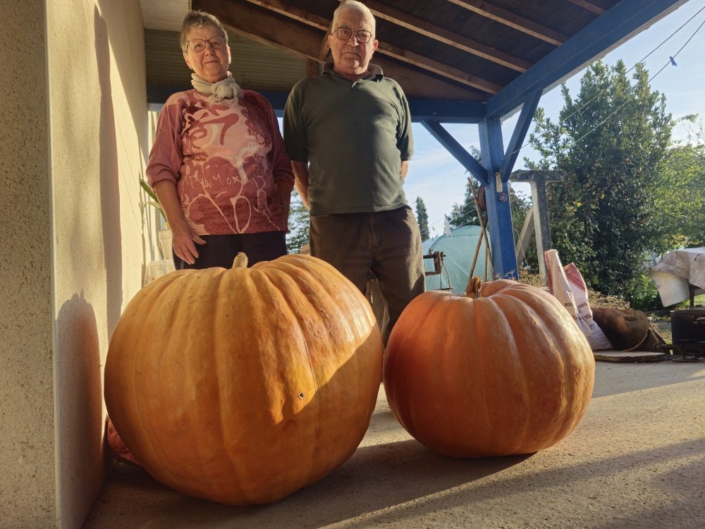 Pesées à 60 et 40kg, et mesurées à 2 et 1,7m de circonférence, ces deux courges étaient inattendues pour ce couple d'anciens agriculteurs. Elles font en moyenne 20 à 50cm pour 5kg.