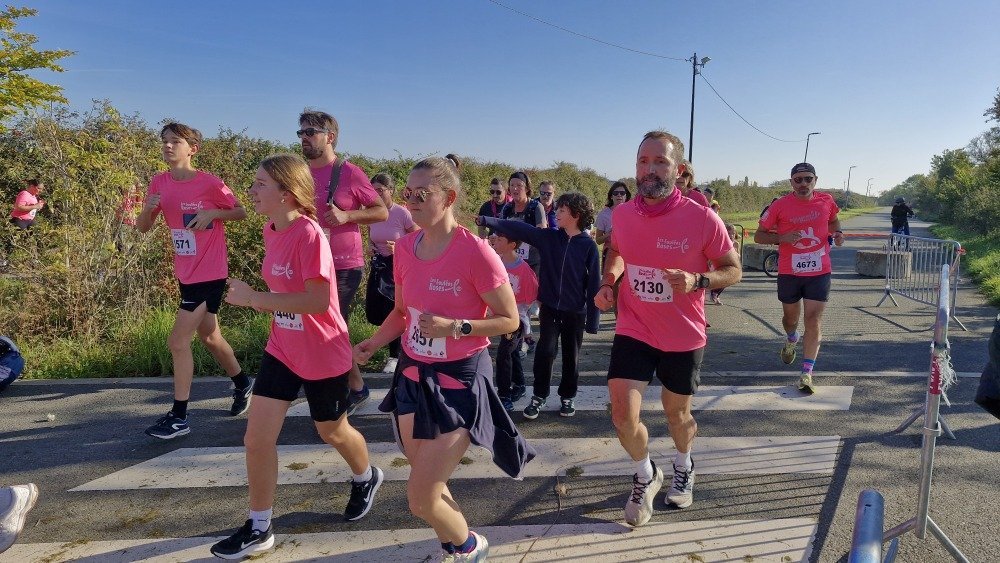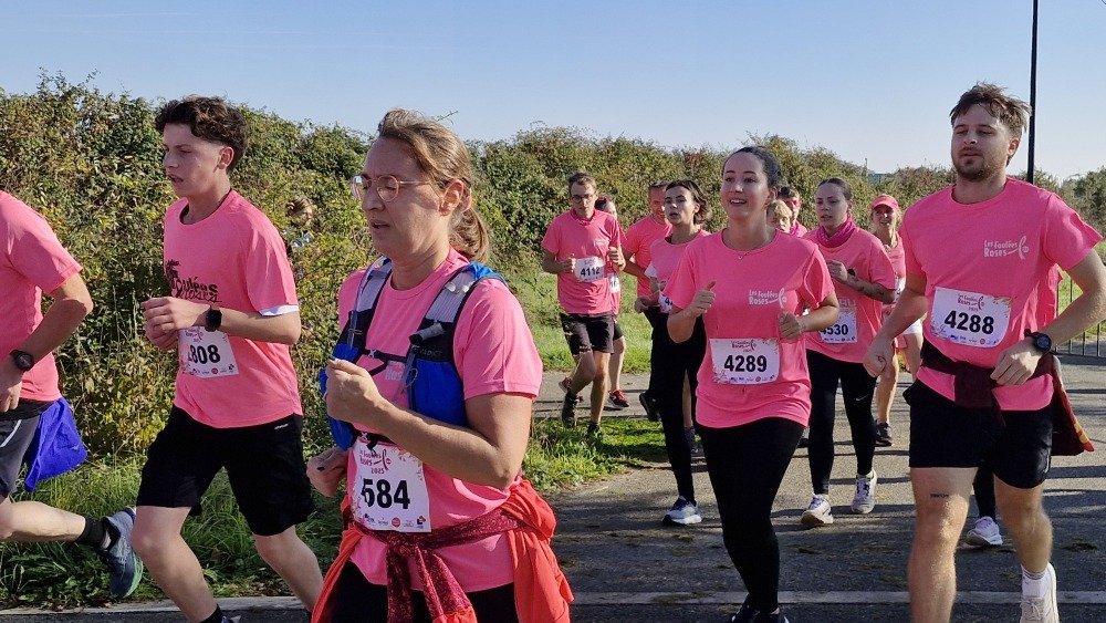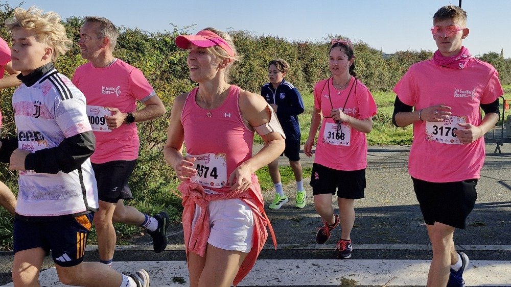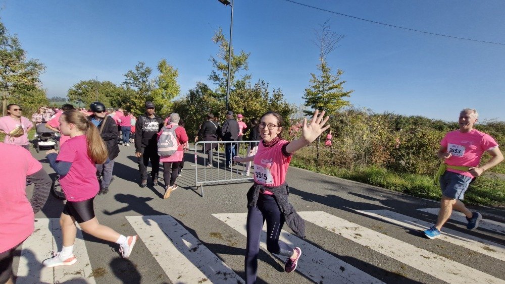 Du rose partout qui brille sous le soleil, sur le circuit de 1,8 km, sur les parcours de marche qui convergent vers le quartier Ferrié, sous la rythmique de l'échauffement zumba.