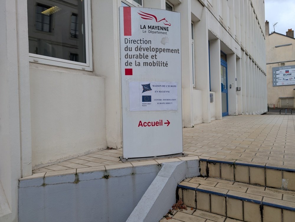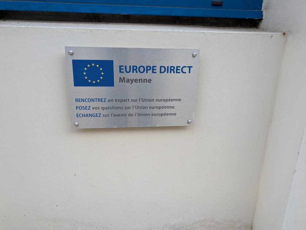 Le panneau indiquant la nouvelle adresse de la Maison de l'Europe en Mayenne. - Benjamin Deglave