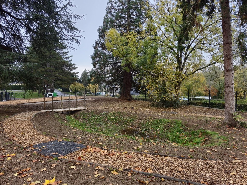 Au-delà de l'engazonnement mené, Julien Amiard présente les deux espaces aménagés pour l'école du dehors dans les cours de la maternelle et de l'élémentaire. Les enseignantes de Rosa-Parks peuvent aujourd'hui profiter de ces espaces rembourrés de copeaux de bois et joliment encadrés de rondins. Surtout, les agents finalisent un parcours sensoriel chez les primaires.