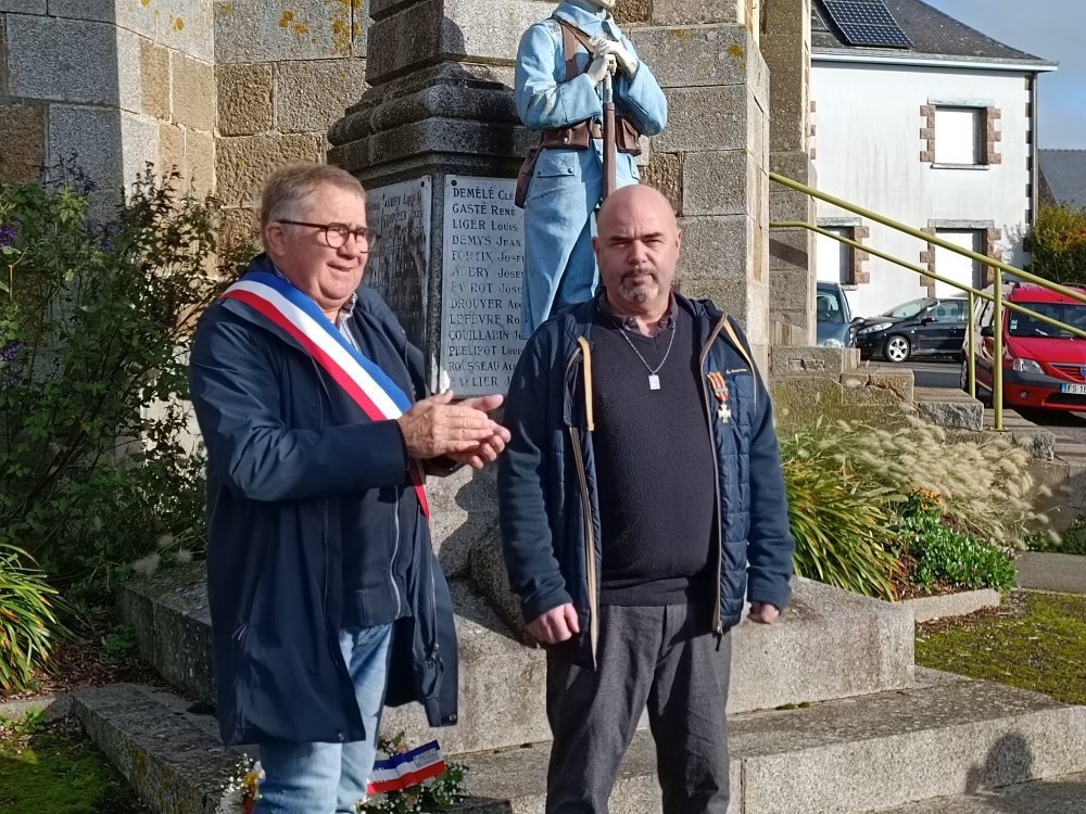 Gervais Hameau, maire, a lu le message de Catherine Vautrin, ministre des Armées et des Anciens combattants, et d'Alice Rufo, ministre déléguée auprès de la ministre des Armées et des Anciens combattants. Il a ensuite remis la Croix du combattant volontaire à Stéphane Germond.