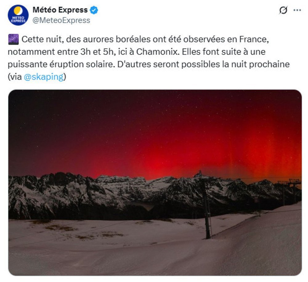 Aurores boréales à Chamonix. - Compte X de Météo Express